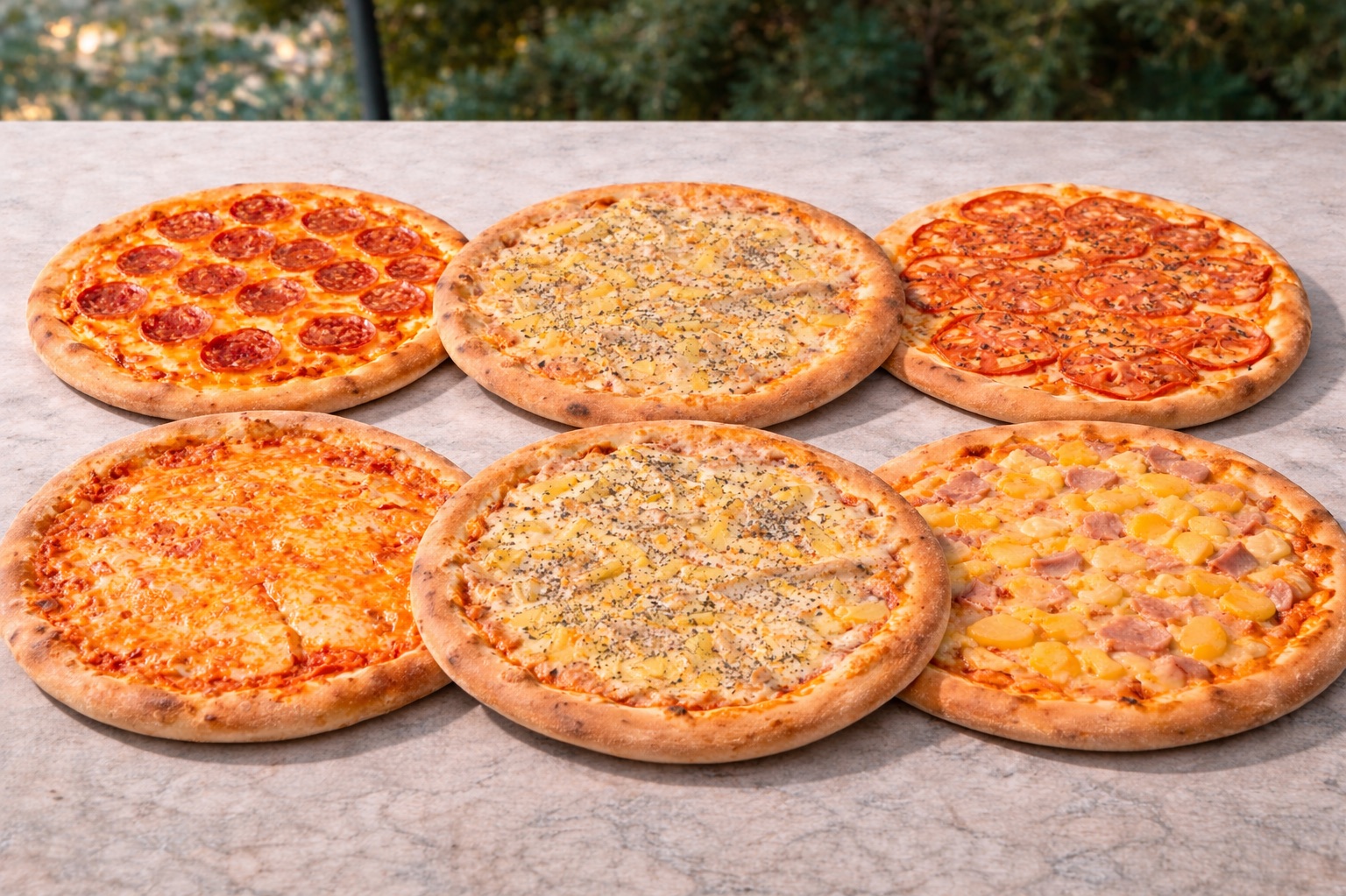 Устраивайте незабываемый вечер вкуснейшими пиццами! Большой комплект из шести видов идеально подойдёт для компании друзей или уютного семейного ужина. Пепперони, четыре сыра, гавайская, карбонара, маргарита и ветчина с грибами – каждый найдёт свой любимый вкус. Удобно, вкусно и быстро! Приятное времяпрепровождение гарантировано!