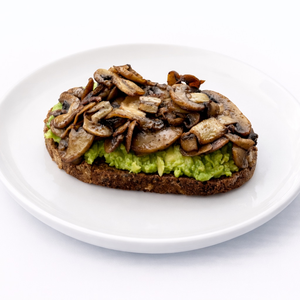 Ингредиенты: тост, авокадо, шампиньоны, соль,чеснок.