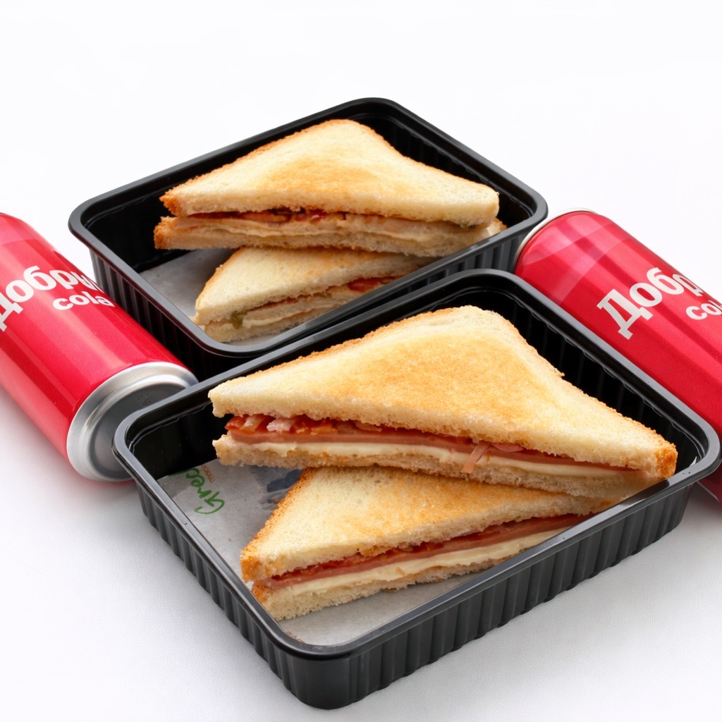 Насладитесь вкусной трапезой без забот! Заказывайте набор «Два сэндвича + две колы» — идеально сбалансированное сочетание насыщенного вкуса сэндвича с курицей и аппетитного сэндвича с ветчиной плюс освежающие напитки. Удобно взять с собой, быстро утоляет голод – ваш идеальный перекус уже ждет вас по отличной цене! Впечатляйте вкусом, выбирайте удобно и экономьте время с нами!