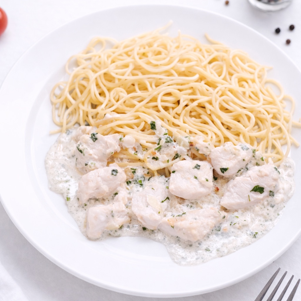 Курица в сливках с гарниром — это невероятно нежное и сочное горячее блюдо из филе куриной грудки с репчатым луком, зеленью и гранулированным чесноком, приготовленное в сливках. Это идеальный выбор для вкусного и питательного обеда или ужина.