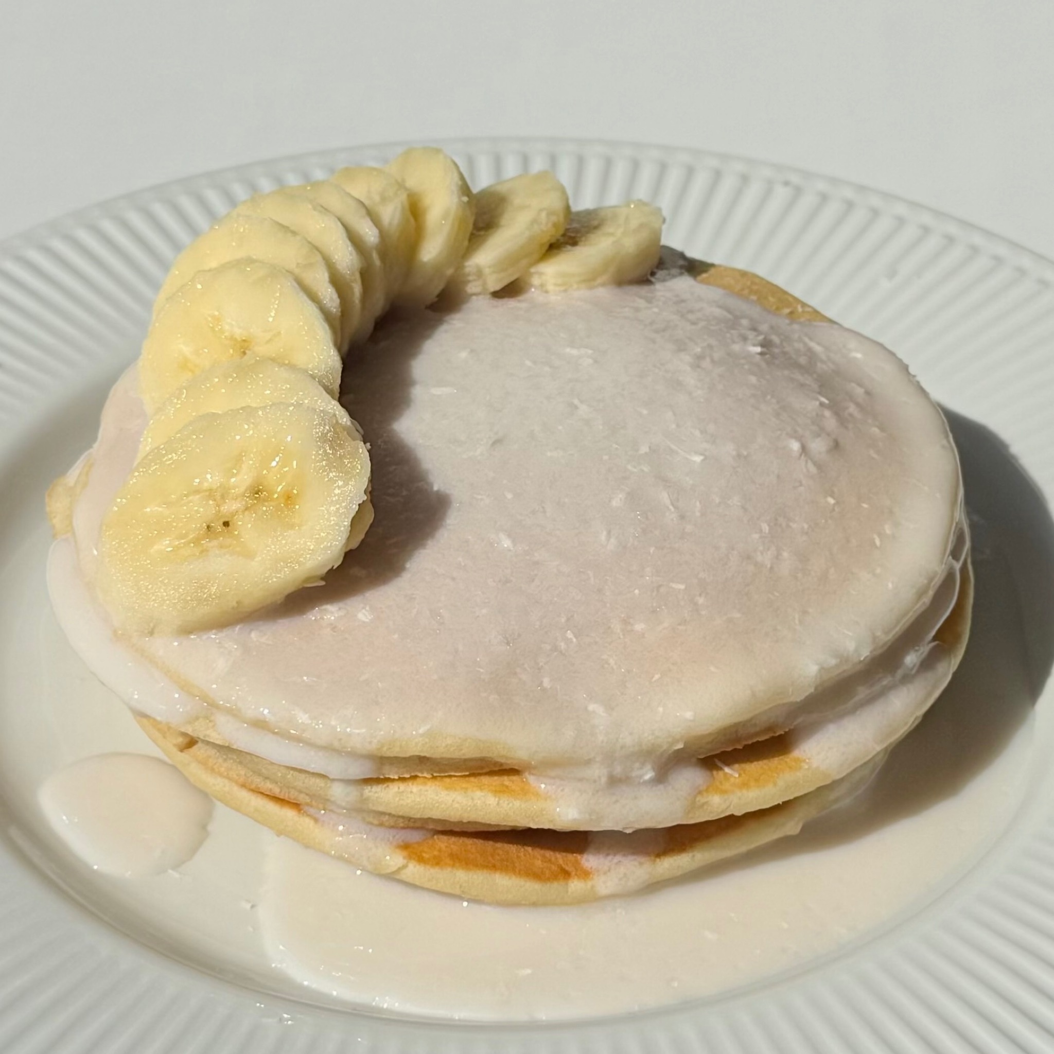 Пышные панкейки с насыщенным вкусом. Нежный вкус банана и сладость кокосового топпинга в сочетании с мягкими панкейками, присыпанными ароматной кокосовой стружкой.