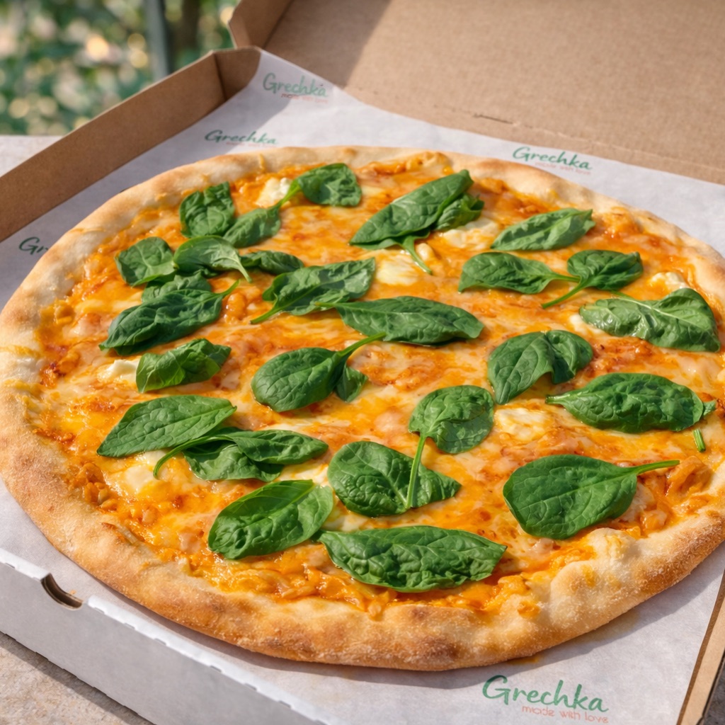 Пицца «Четыре сыра» — это классика категории «Пицца». Тонкая основа, ароматный томатный соус и четыре вида сыра: тягучая моцарелла, острый чеддер, пряный пармезан и солоноватая фета.