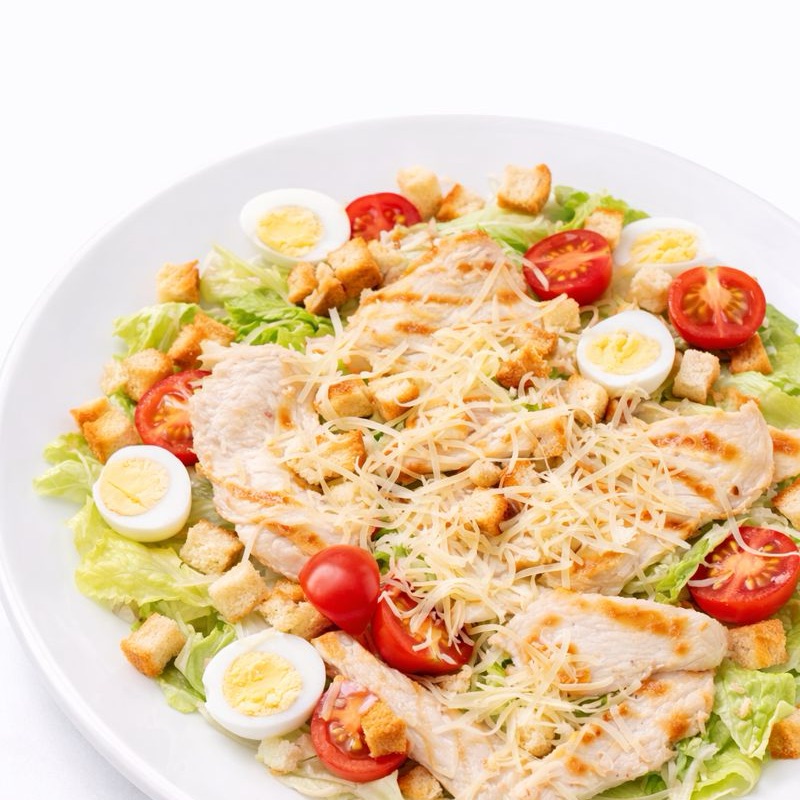 Ингредиенты: салат "Айсберг", соус цезарь (оливковое масло, куриные яйца, филе анчоусов, чеснок), перепелиные яйца, томаты черри, сухари, пармезан. 250г