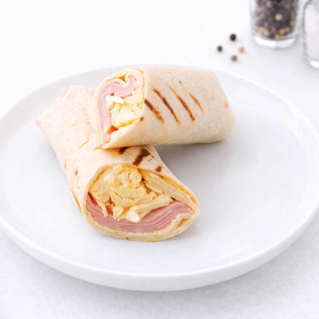 Ищете сытный и вкусный перекус? Тогда вам стоит попробовать этот аппетитный ролл из категории «Сэндвичи». В составе вы найдёте всё для плотного обеда: тортилью с расплавленным чеддером, яйцо, ломтики ветчины и сочный томат.