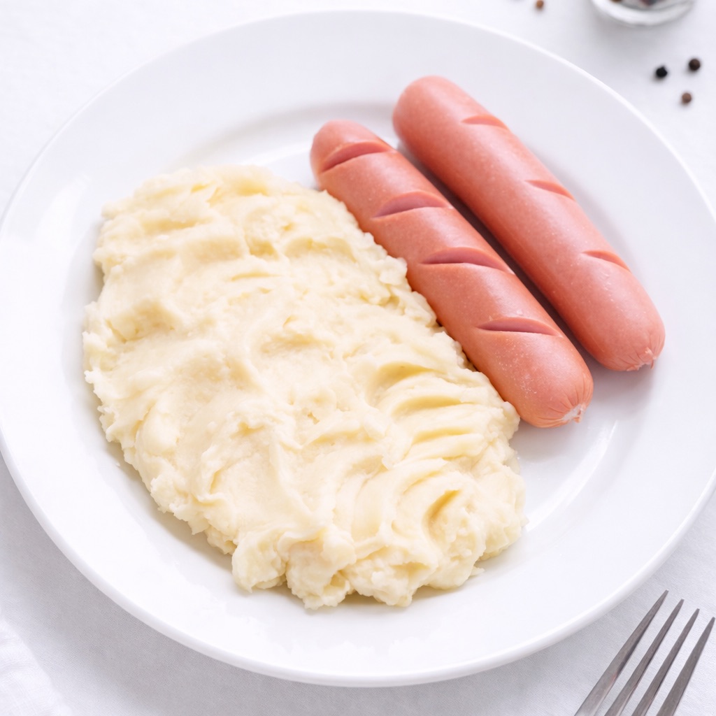 Согревающий аппетитный обед в традиционной подаче. Горячие сосиски с молочным вкусом и питательный гарнир — классическое сочетание, которое порадует вкусом и позволит надолго забыть о чувстве голода.
